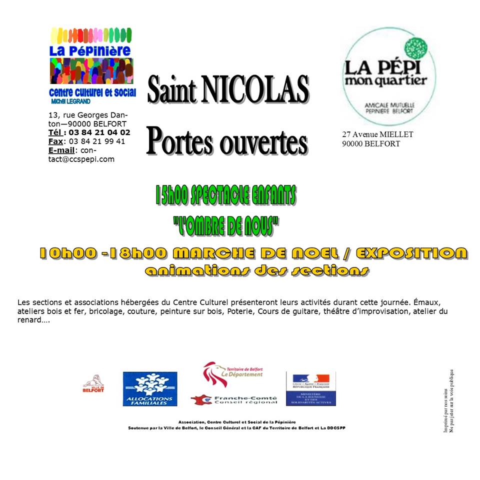 Samedi 5 décembre à partir de 10h jusqu’à 18h c’est la journée portes ouvertes au CCS de la Pépinière Michel Legrand 13 rue Danton à Belfort!