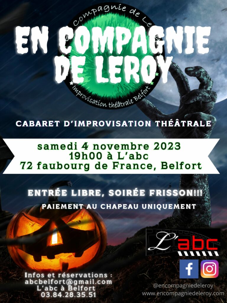 C’est autour de la thématique Halloween que se déroulera le traditionnel cabaret d’impro de novembre. Venez frissonner avec nous samedi 4 novembre, à 19h au bar l’abc !
