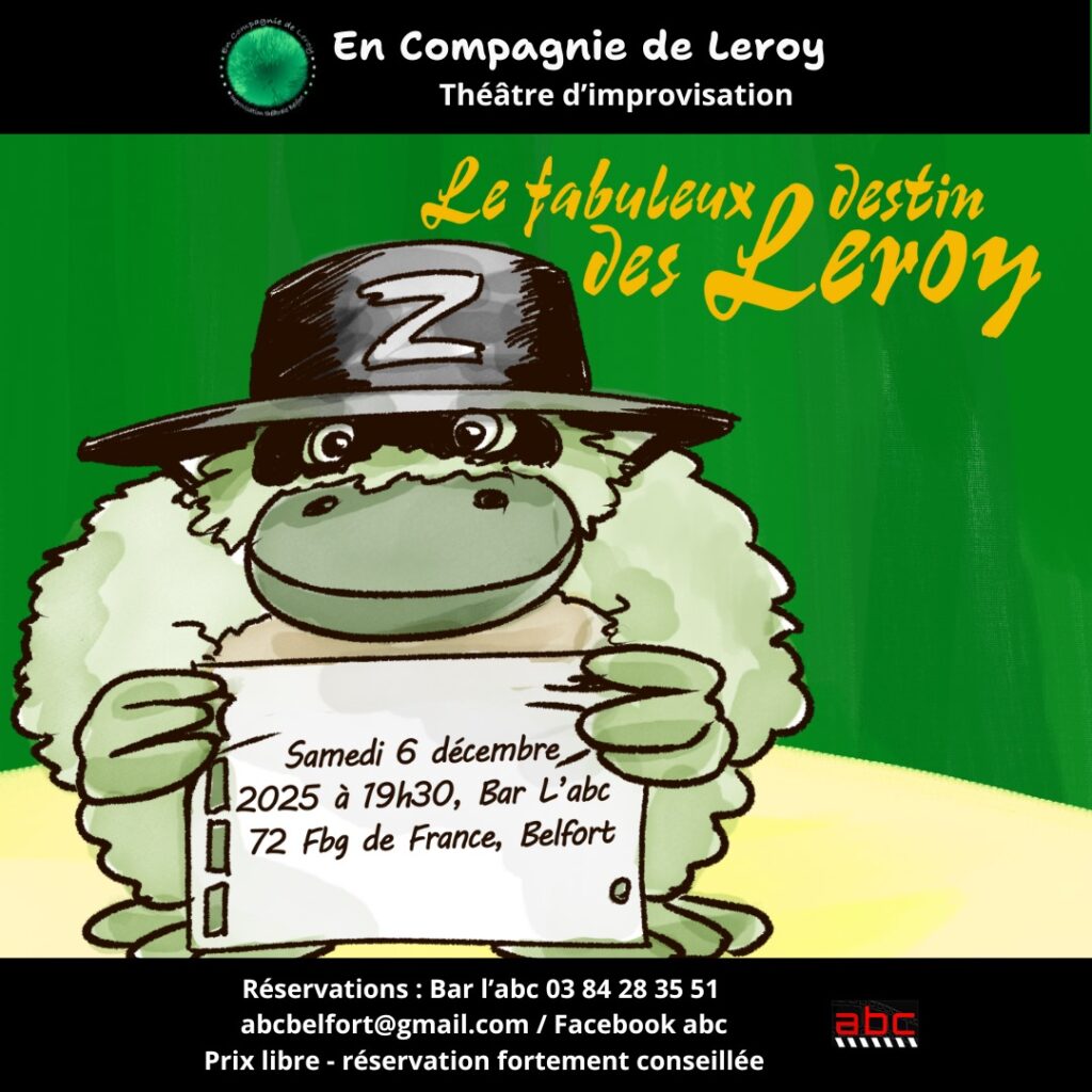 Les fêtes de fin d’année approchent, et la magie avec : la compagnie En compagnie de Leroy propose un cabaret à l’abc le 6 décembre 2025, de 19h30 à 21h30 (modification temporaire des horaires, c’est la magie de Noël). Venez échapper aux frimas de la fin de l’automne et découvrir le fabuleux destin des Leroy avec nous. Improvisation oblige, nous non plus ne savons rien de ce qu’il va se passer !