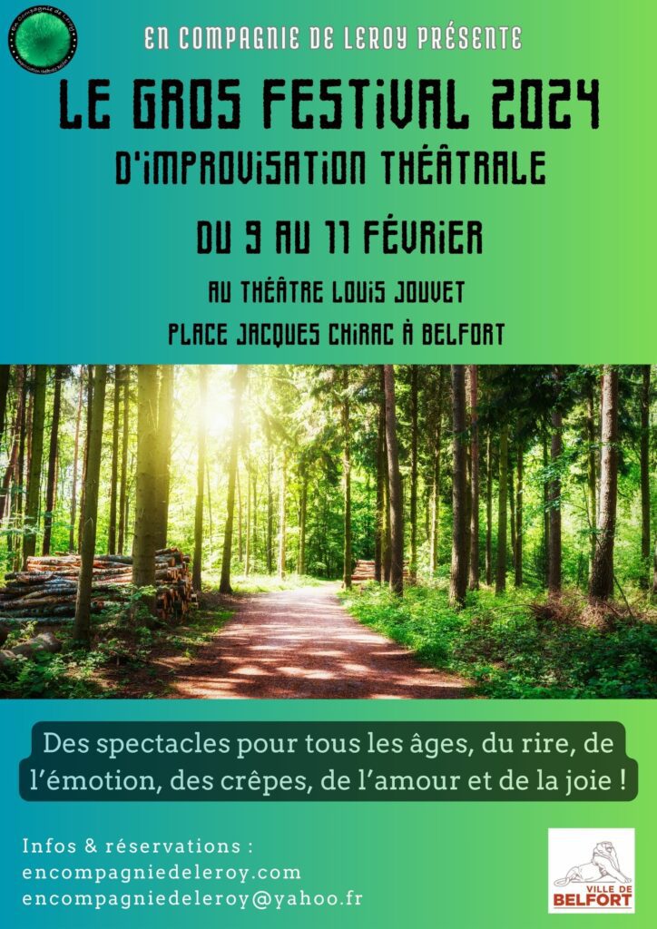 Le Gros Festival 2024 d’En Compagnie de Leroy sort en forêt. Des formats qui inspirent et parfument, font voler et rêver… Vous rencontrerez des comédiens habillés en bûcheron et verrez des spectacles mettant en scène des comédiens Leroy, des comédiens invités, pour les adultes et les enfants… Venez profitez de notre Gros Festival du vendredi 9 au dimanche 11 février !
