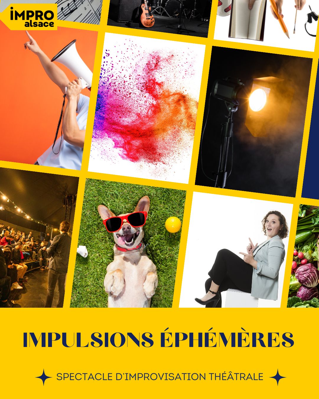 « Impulsions Éphémères » est un spectacle d’improvisation théâtrale dirigée mettant en scène cinq comédiens et comédiennes. Chaque artiste se voit attribuer une impulsion unique, que ce soit une note musicale, une image, une source lumineuse, ou même un objet mystérieux, afin de trouver l’inspiration.