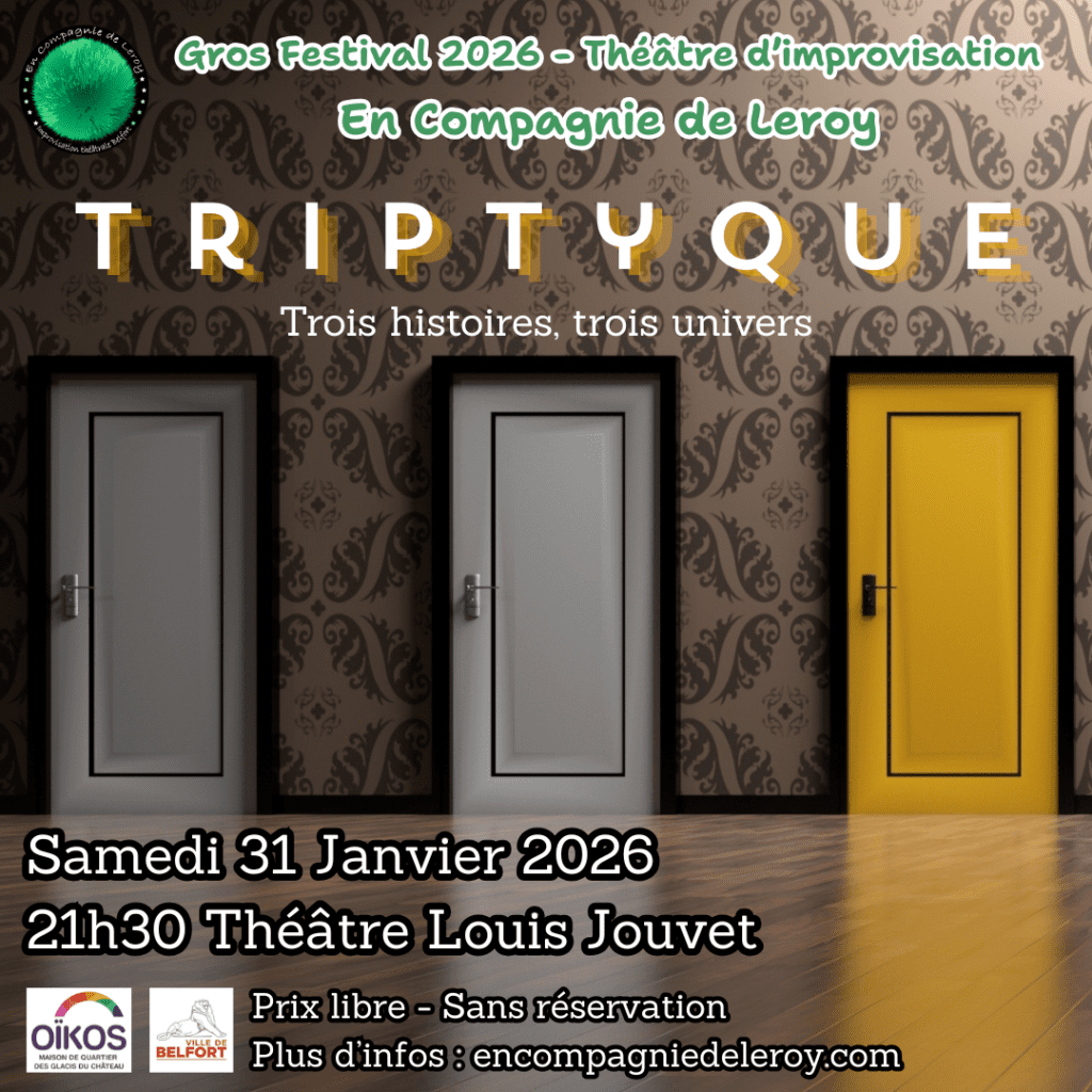 21h30 : Triptyque – Trois histoires, trois univers différents se croisent dans le même spectacle ! La durée de chaque histoire sera exactement la même : à chaque équipe de gérer sont temps pour terminer en apothéose ! Le public pourra voter pour son histoire préférée !