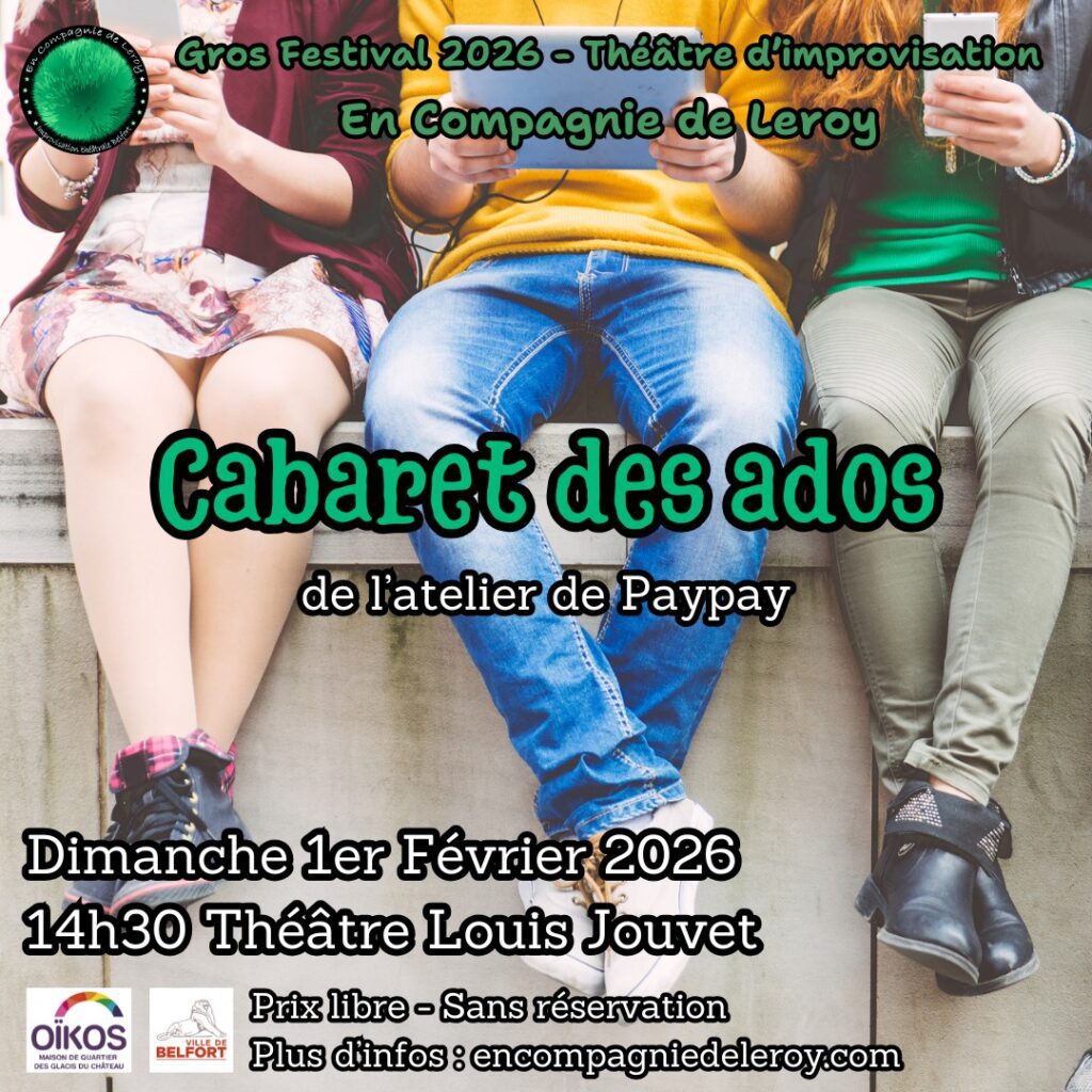 14h30 : Cabaret des ados – Les futur de l’improvisation, c’est dans ce spectacle. Venez découvrir un cabaret porté par de jeunes comédiens !