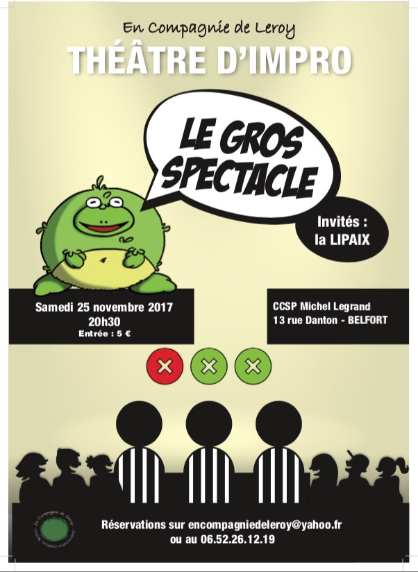 Nous sommes la compagnie d’improvisation théâtrale la plus talentueuse de Belfort. Si si ! Et nous allons vous le prouver ! Et à cette occasion nous invitons la LIPAIX, qui est, elle, la compagnie d’improvisation théâtrale la plus talentueuse d’Aix-en-Provence !