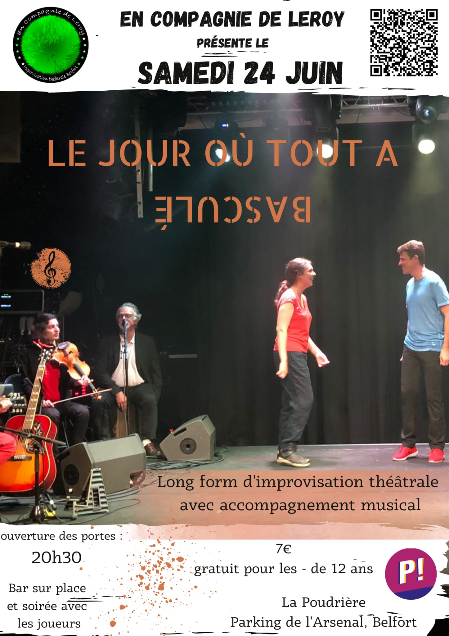 Le samedi 24 juin à 20h30 à la Poudrière, En Compagnie de Leroy vous propose le spectacle long form « Le jour où tout a basculé ». Un gros spectacle où, dans une ambiance particulière, une seule histoire sera développée tout au long de la soirée : l’histoire de 5 vies touchées par un événement qui va tout changer.