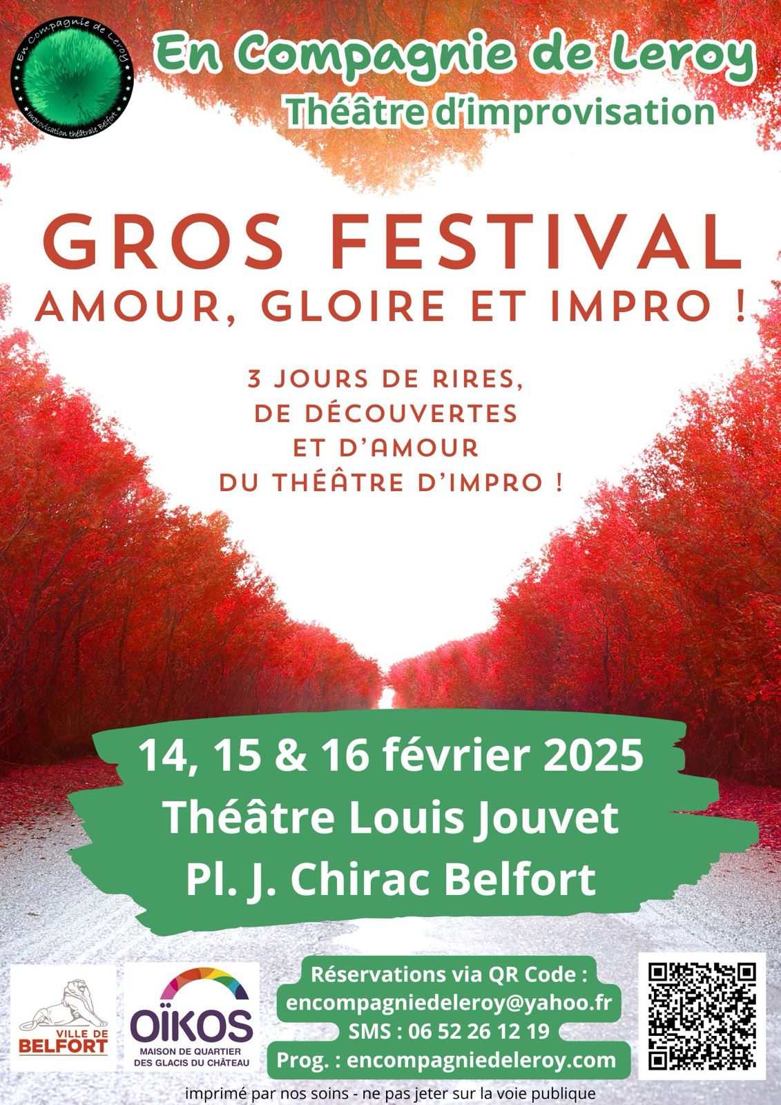 - 2025 : 9ème édition, à Louis Jouvet, Le Gros Festival Amour, Gloire et Impro
